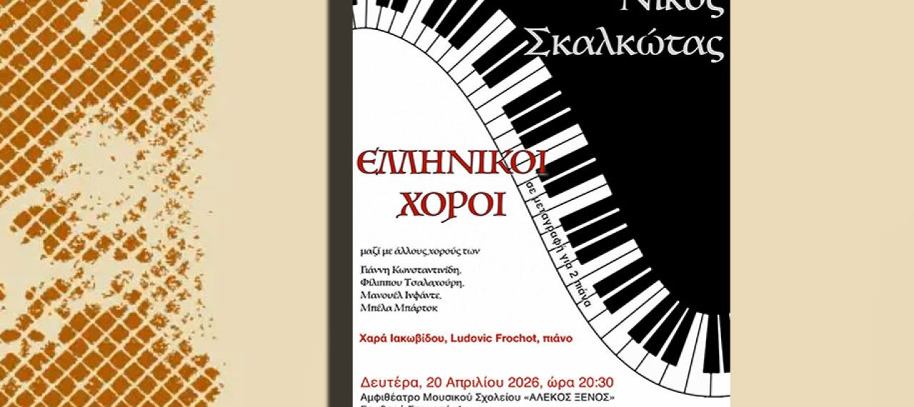 Το Μουσικό Σχολείο Ζακύνθου διοργανώνει συναυλία Αφιέρωμα στο Νίκο Σκαλκώτα με έργα για 2 πιάνα .