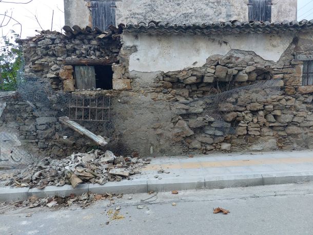 Κατάρρευση τοιχίου στο Μετόχι του Αγίου Διονυσίου από το σεισμό [photo]
