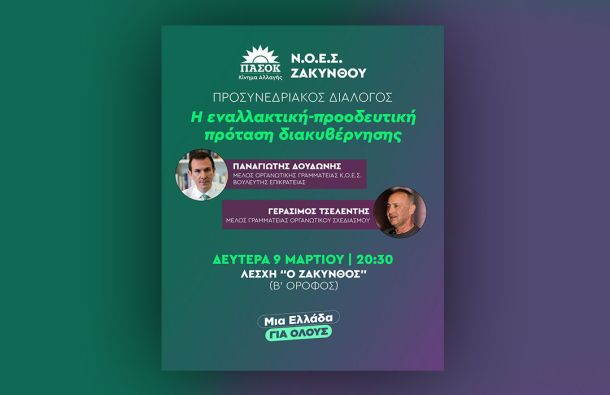 Σε μια συγκυρία έντονων πολιτικών και κοινωνικών εξελίξεων, η Νομαρχιακή Επιτροπή ΠΑΣΟΚ – Κινήματος Αλλαγής Ζακύνθου πραγματοποιεί Ολομέλεια τη Δευτέρα 9 Μαρτίου στις 20:30, στη Λέσχη «Ο Ζάκυνθος» (Β’ όροφος).