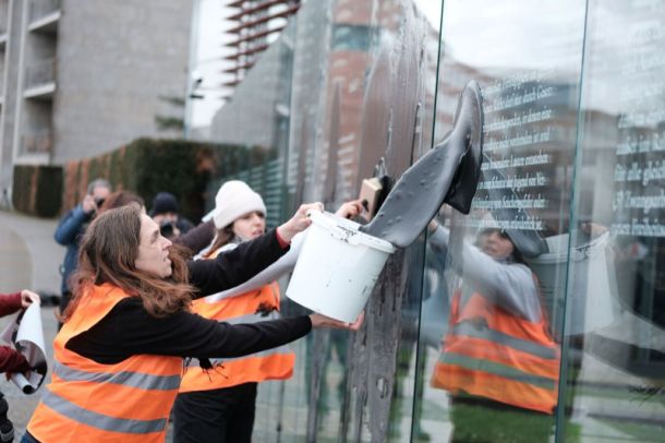Την οργή του γερμανικού πολιτικού κόσμου προκάλεσαν οι ακτιβιστές για το κλίμα που διαδήλωσαν το Σάββατο στο Βερολίνο και έριξαν μαύρο υγρό στο μνημείο όπου είναι χαραγμένα τα άρθρα του Συντάγματος, κοντά στο κτίριο της Μπούντεσταγκ.