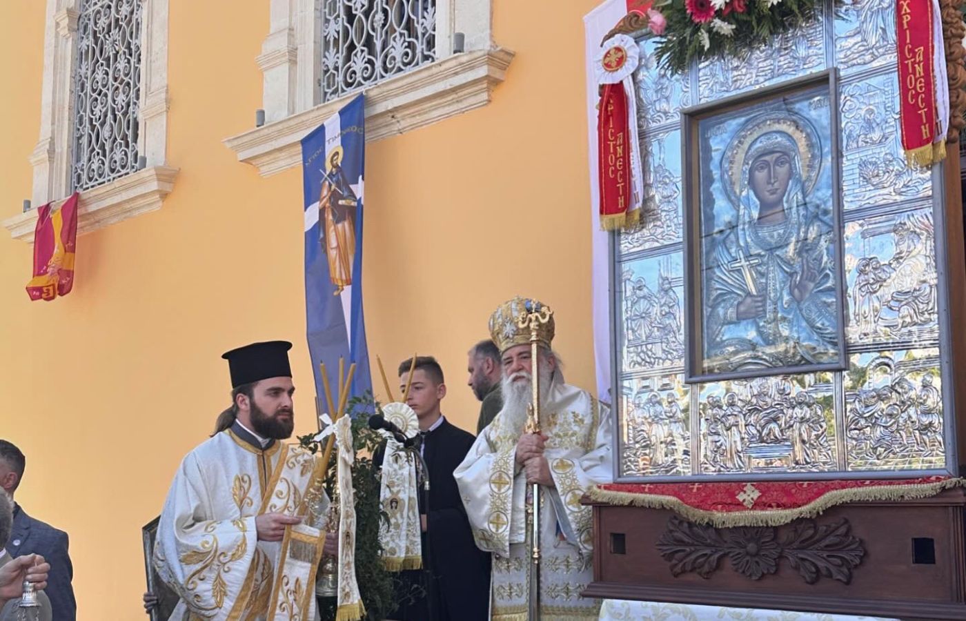 Στον μέγα αρχιερατικό Εσπερινό, αλλά και στην Θεία Λειτουργία στο τέλος της οποίας πραγματοποιήθηκε η λιτάνευση της θαυματουργού Εικόνας.