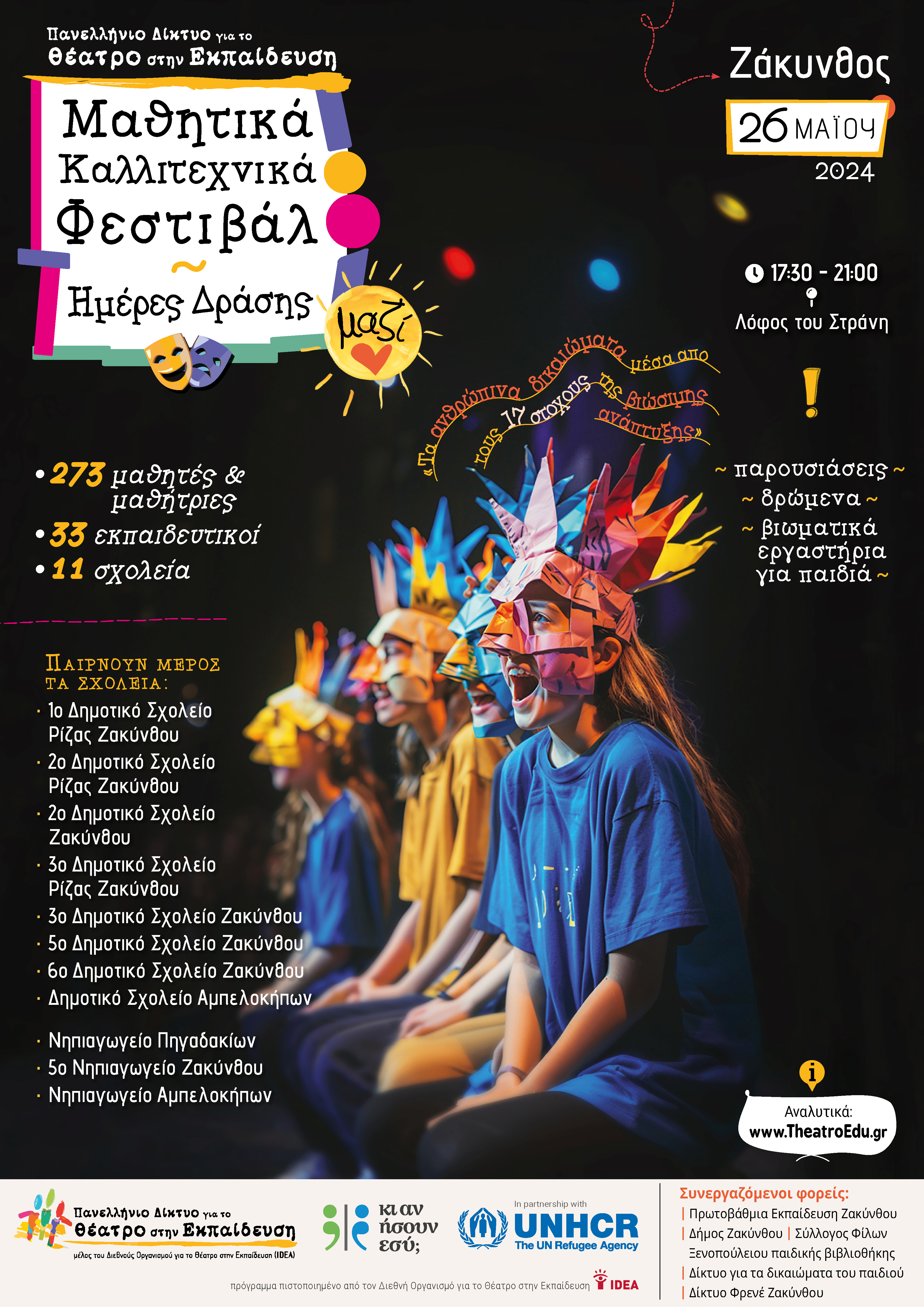 Ο Σύλλογος Φίλων της Ξενοπούλειου παιδικής βιβλιοθήκης συνεργάστηκε για 3η χρονιά με το Πανελλήνιο Δίκτυο για το Θέατρο στην εκπαίδευση, με την Διεύθυνση Πρωτοβάθμιας Εκπαίδευσης , τον Δήμο Ζακύνθου , το Δίκτυο για τα δικαιώματα του παιδιού & το Δίκτυο Φρενέ, για την πραγματοποίηση του μαθητικού φεστιβάλ.