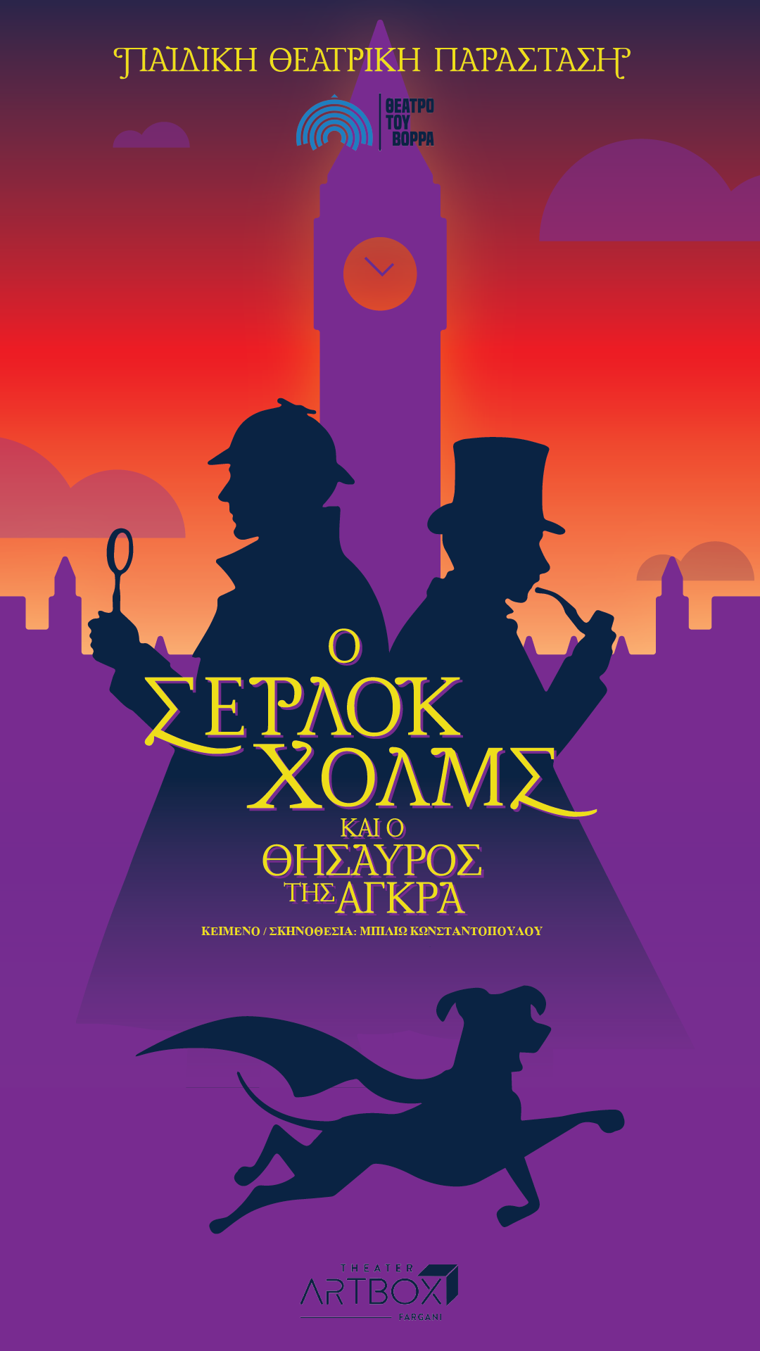 Ο διάσημος ντετέκτιβ Σέρλοκ Χολμς και ο αφοσιωμένος βοηθός του, Δρ. Γουάτσον, επιστρέφουν στη σκηνή σε μια περιπέτεια γεμάτη γρίφους, μυστήριο και ξεκαρδιστικές ανατροπές! Στην παιδική θεατρική παράσταση «Ο Σέρλοκ Χόλμς και ο Θησαυρός της Άγκρα", μικροί και μεγάλοι θεατές θα ακολουθήσουν το θρυλικό δίδυμο σε ένα απολαυστικό κυνήγι θησαυρού, βασισμένο στο κλασικό έργο Το Σημάδι των Τεσσάρων του Άρθουρ Κόναν Ντόιλ.