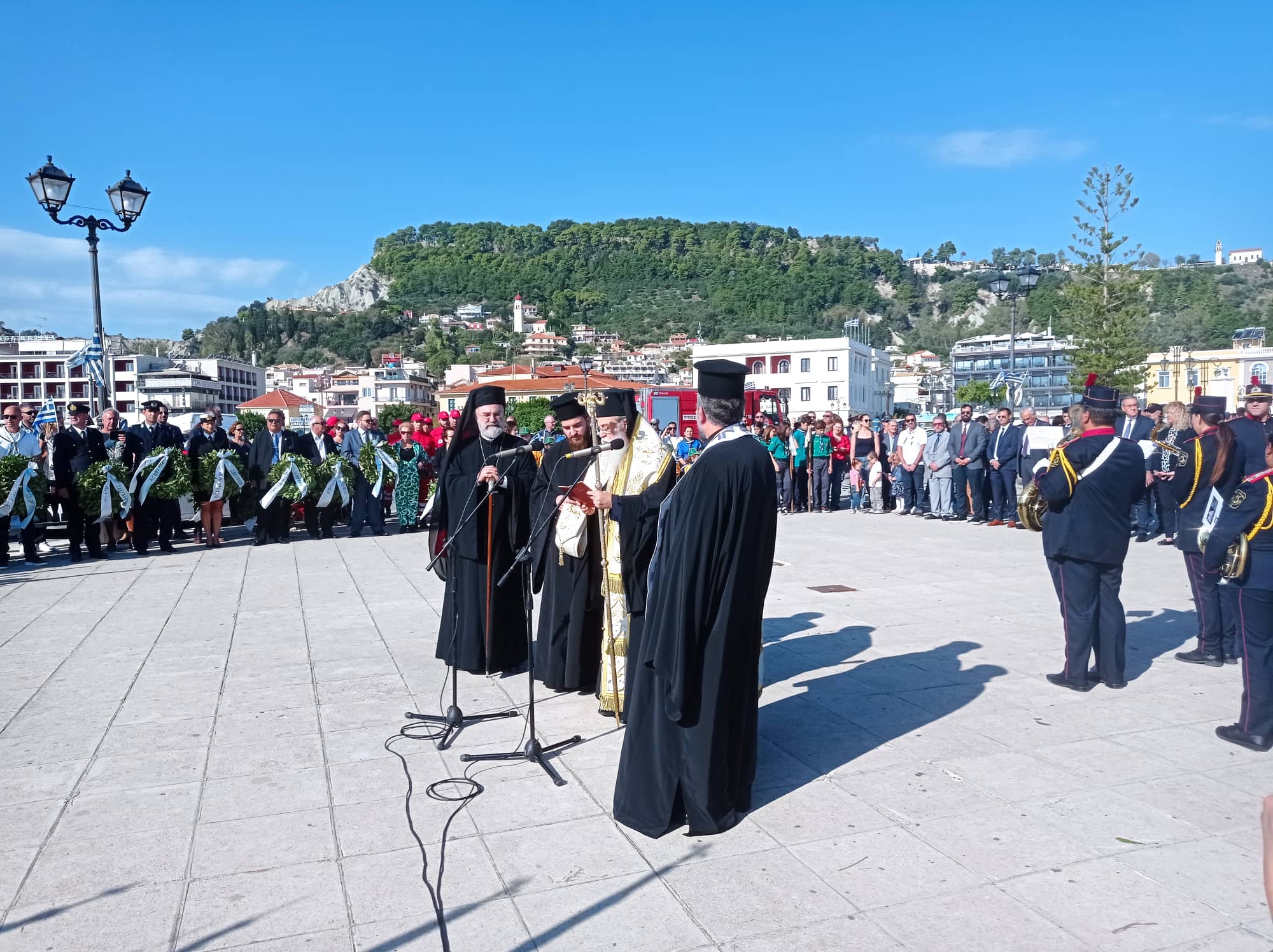 Στις 11:00 π.μ. έγινε επιμνημόσυνη δέηση και κατάθεση στεφάνων στο Ηρώο των πεσόντων από τις Αρχές, τα σώματα ασφαλείας και φορείς του τόπου, σύμφωνα με την καθιερωμένη τάξη.