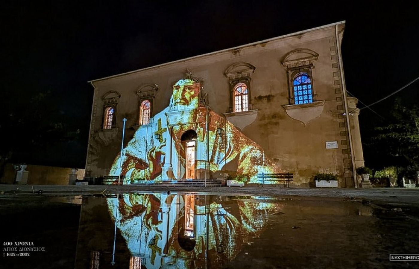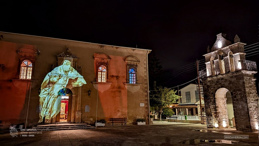 Στο πλαίσιο της αφιερωματικής αυτής βραδιάς παρουσιάσθηκε ένα θέαμα υψηλού επιπέδου, ένα video mapping, με προβολή μουσειακών εικόνων της μορφής του τιμωμένου Αγίου και του λογότυπου της 400ετηρίδας. Η ιδέα και παραγωγή ήταν του MSc Μουσειολογίας κ. Ιωάννη Πορφύριου Καποδίστρια και οι λήψεις με drone πραγματοποιήθηκαν από τον κ. Απόστολο Βαϊνόπουλο, πτ. Συντήρησης Έργων Τέχνης.