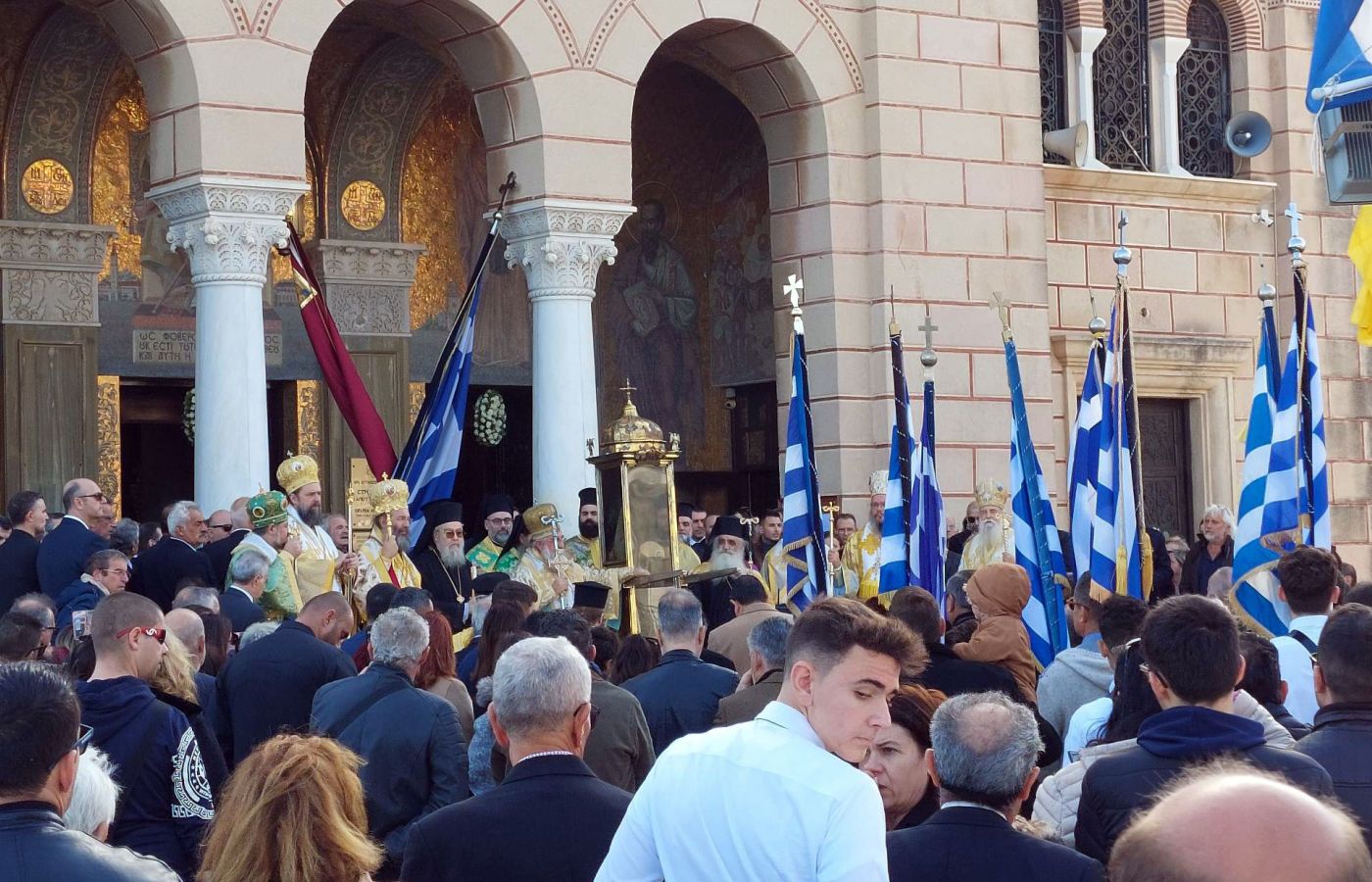 «Θα ήθελα να θέσω ένα μεγάλο πρόβλημα αυτή την στιγμή …Τα Στροφάδια δεν έχουν τηλέφωνο , τηλέφωνο, γιατί δεν έχουν τηλέφωνο … Όταν το κράτος ,δηλαδή το υπουργείο πολιτισμού, έχει δώσει την έγκριση και δεν έχουμε επικοινωνία αυτή την στιγμή με τα Στροφάδια… Να δούμε αν ζει η πεθαίνει ο φύλακας και οι άνθρωποι που δουλεύουν εκεί … Είναι η πρώτη στιγμή που διαμαρτύρομαι, τα υπόλοιπα θα τα πούμε στην συνέχεια … Να είναι βοήθειά μας ο Άγιος, και να είναι φύλακας, και θα είναι τύχη αγαθή μόνο ότι έχουμε τον Άγιο»