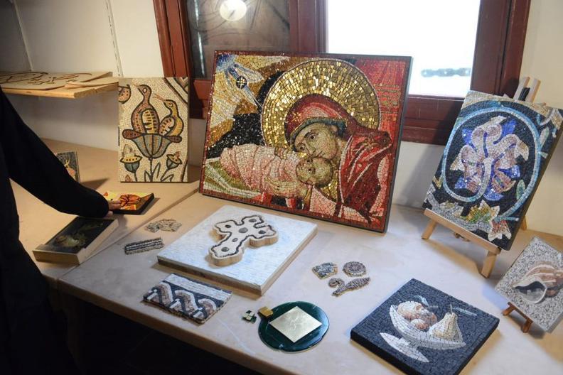 Στο εργαστήριο εισαγωγής στην τέχνη των ψηφιδωτών που δημιούργησαν στη μονή του Αγίου Γεωργίου των Κρημνών στη Ζάκυνθο, οι μοναχοί ξαναέφεραν την ψηφιδογραφία στον… φυσικό της χώρο