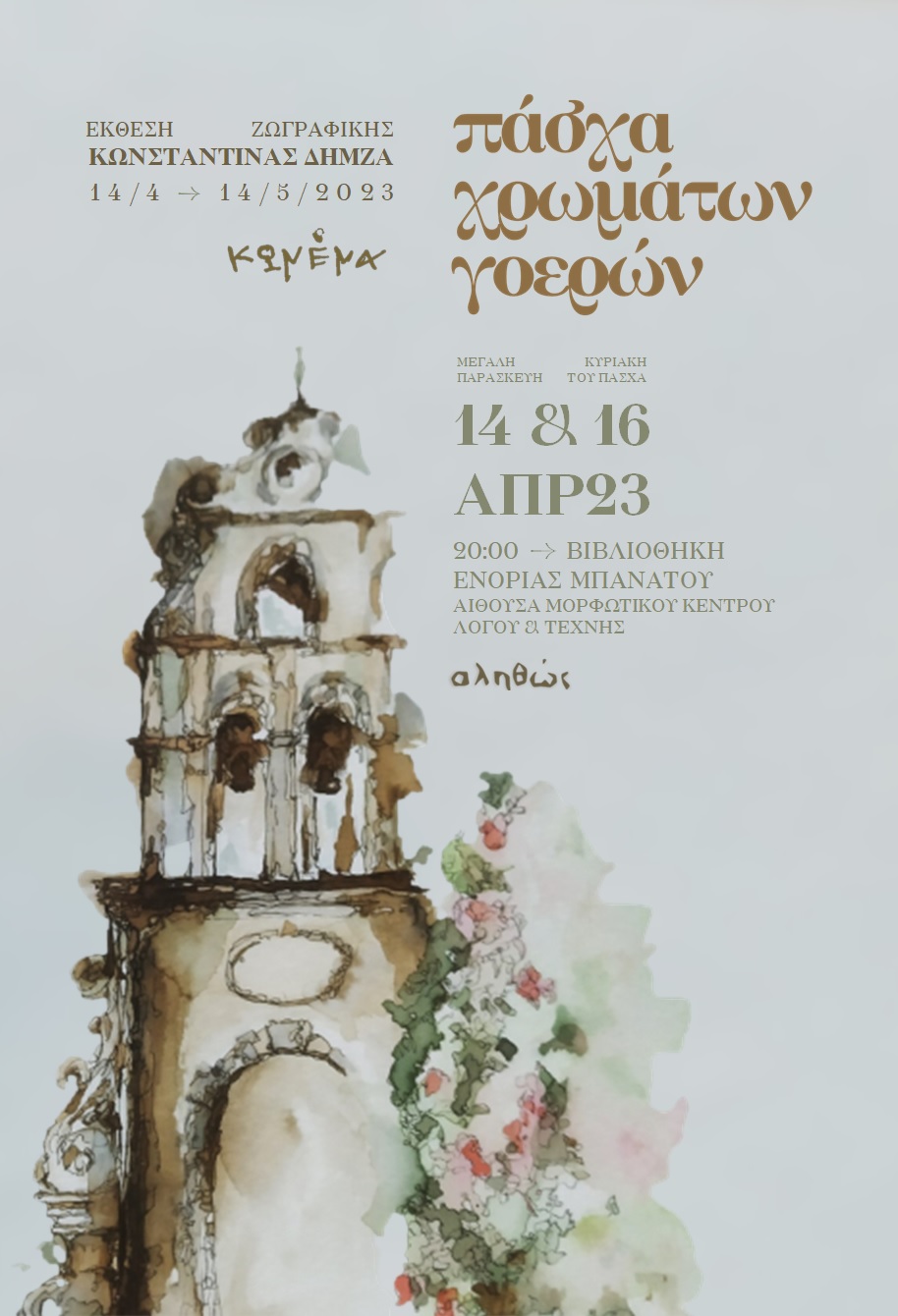 Το Μορφωτικό Κέντρο Λόγου και Τέχνης «Αληθώς», συνεχίζοντας τις πολιτιστικές δράσεις του, οργανώνει έκθεση ζωγραφικής της καλλιτέχνιδο Κωνσταντίνας Δήμζα / ΚΩΝέΝΑ: