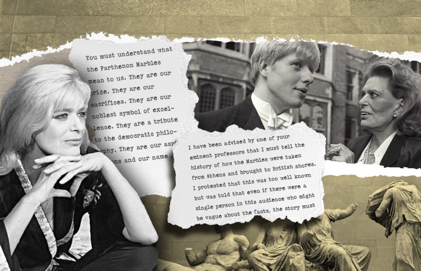 «Υπάρχουν τα Μάρμαρα του Παρθενώνα. Δεν υπάρχουν Ελγίνεια Μάρμαρα. Όπως υπάρχει ο Δαβίδ του Michael Angelo, υπάρχει η Αφροδίτη του Da Vinci, υπάρχει ο Ερμής του Πραξιτέλη, υπάρχουν οι Ψαράδες στη θάλασσα του Turner, υπάρχει η Capella Sixtina. Δεν υπάρχουν Ελγίνεια Μάρμαρα», είχε τονίσει σε μια άλλη «πύρινη» ομιλία της το 1986 στην Οξφόρδη, παρουσία μάλιστα του μετέπειτα πρωθυπουργού της Βρετανίας, Μπόρις Τζόνσον.