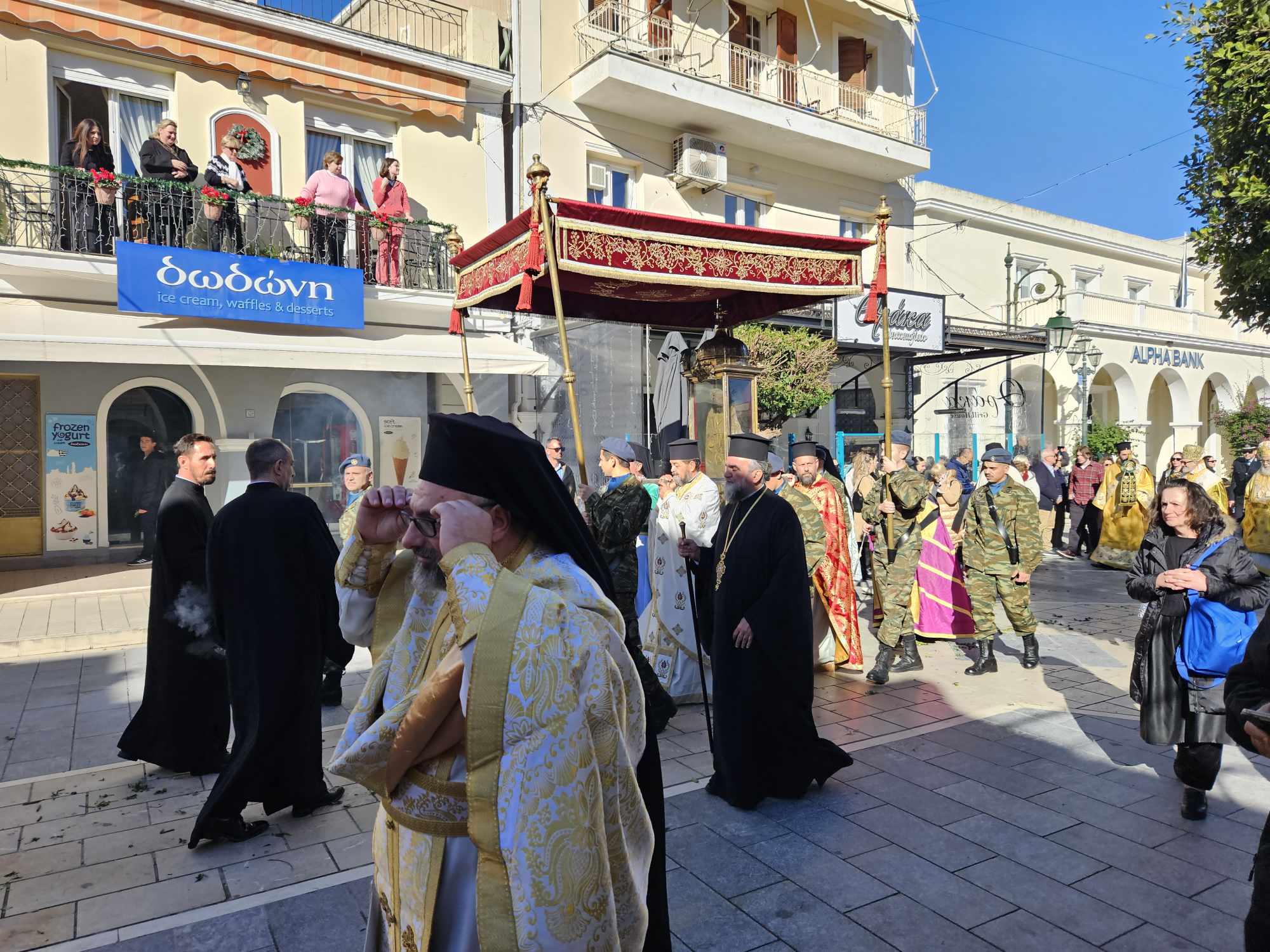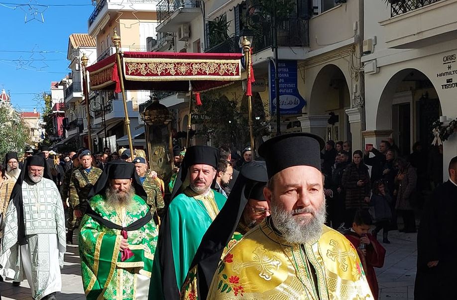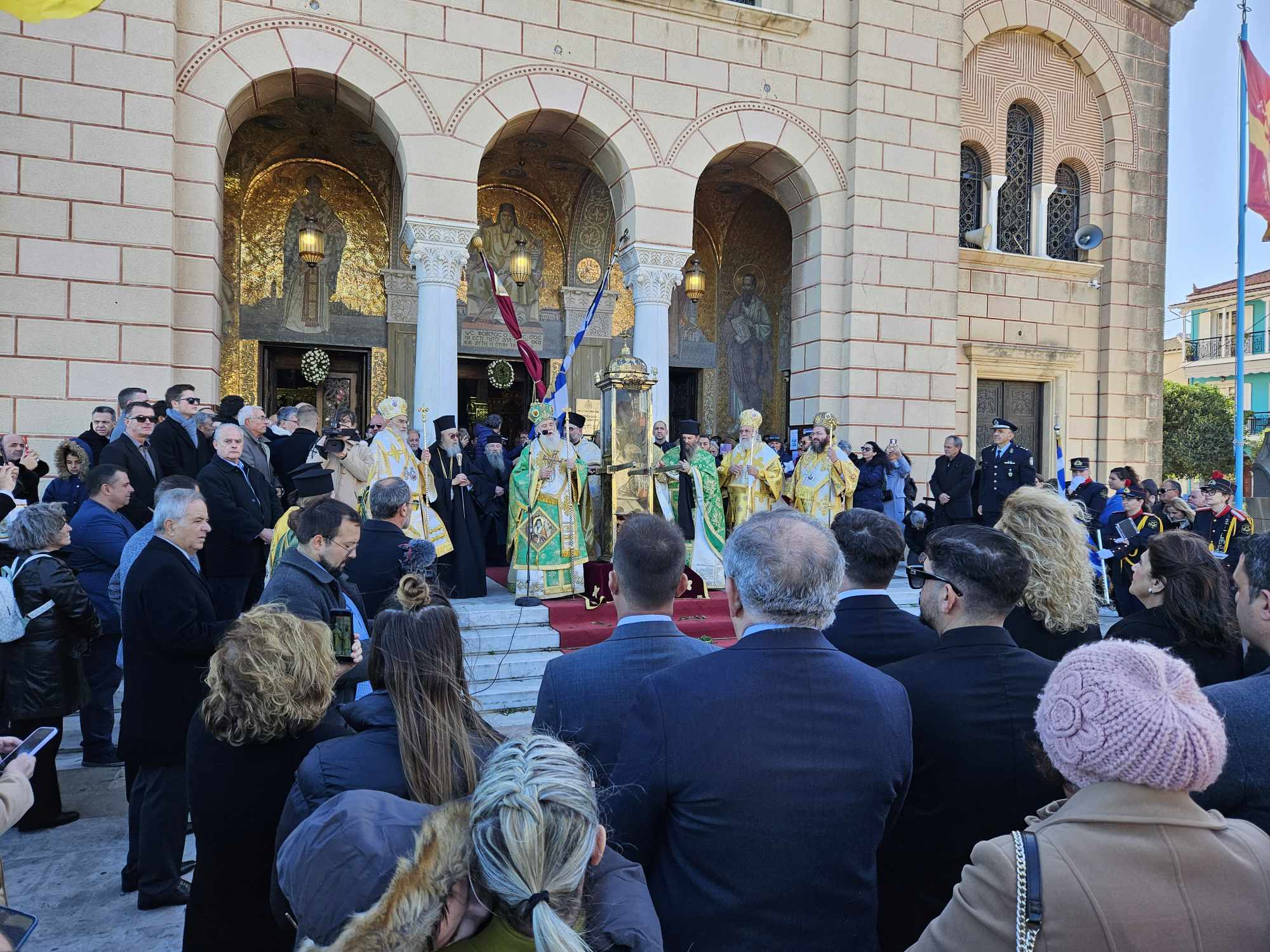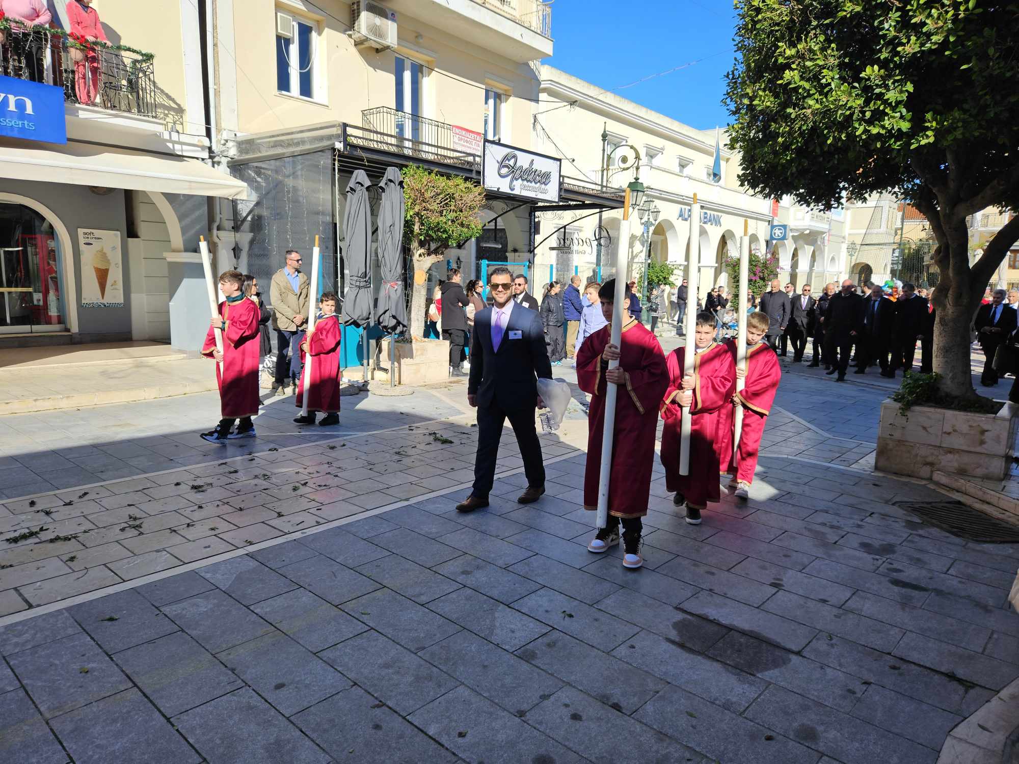 Στις 11:00 το πρωί , και κάτω από τον ηλιόλουστο ουρανό της Ζακύνθου, αλλά με έντονο κρύο, πραγματοποιήθηκε η λιτανεία του Ιερού Σκηνώματος στους δρόμους της πόλης με την συμμετοχή πλήθους κόσμου.