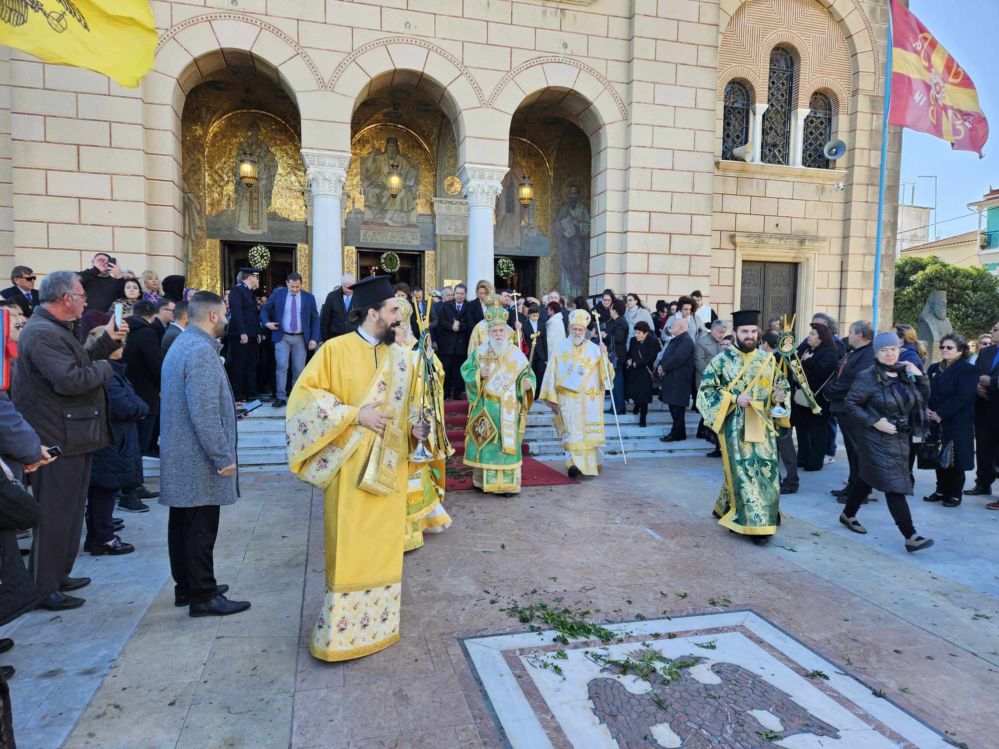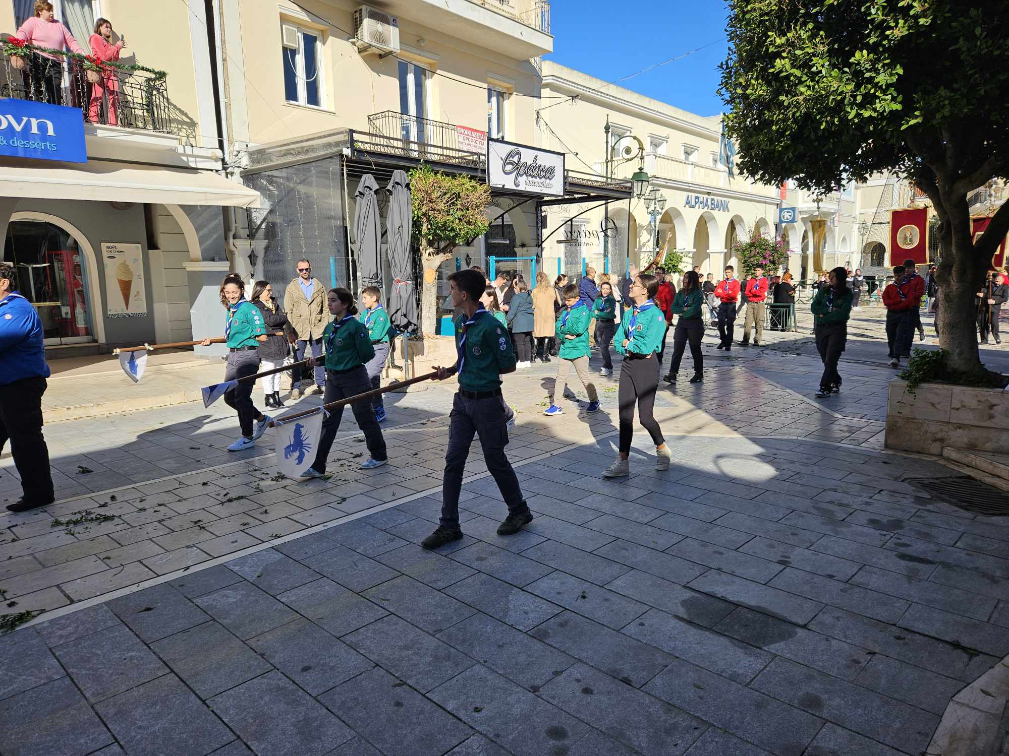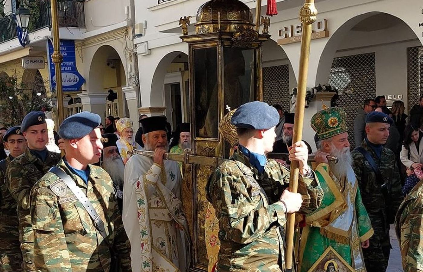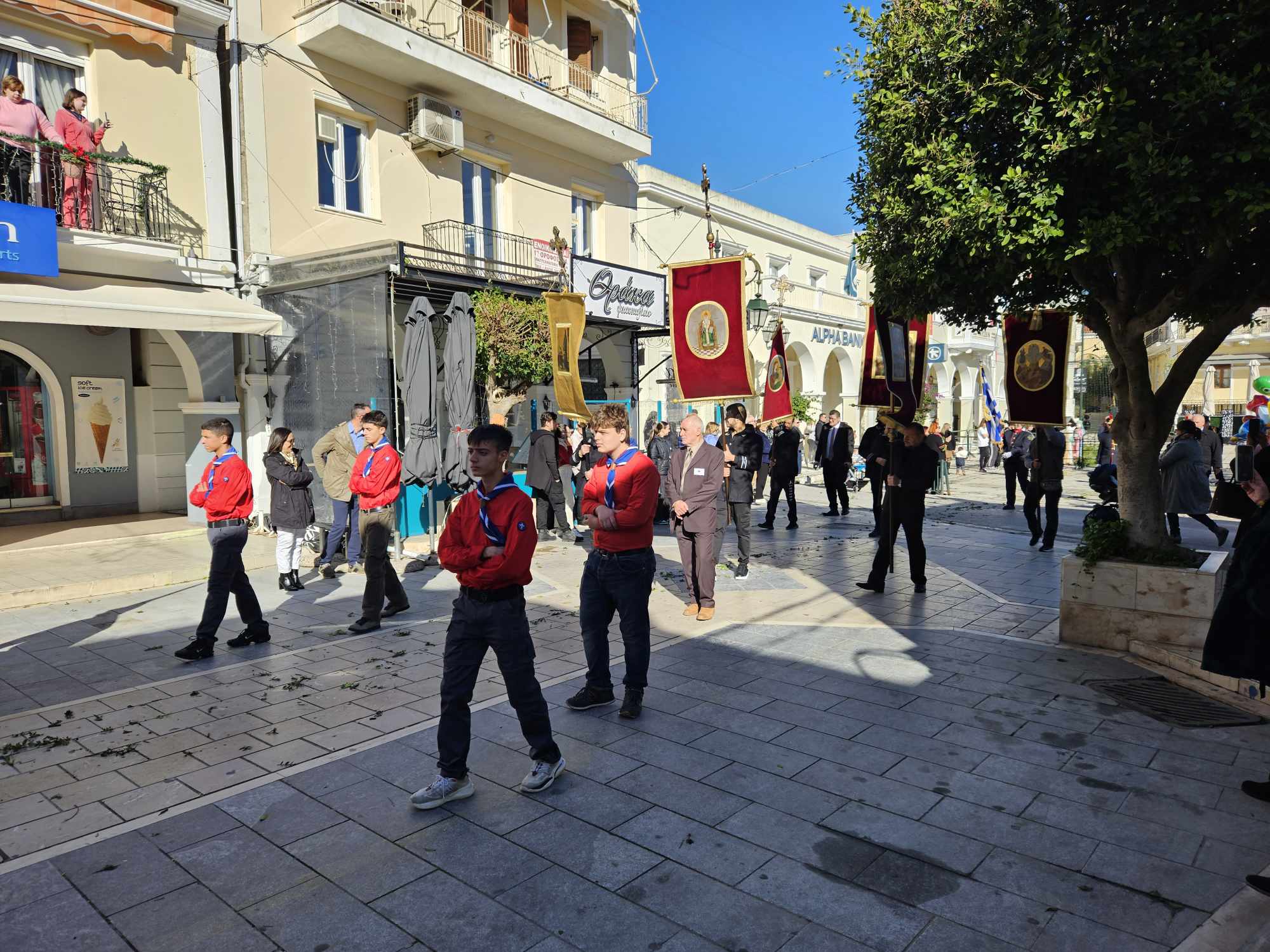 Στις 11:00 το πρωί , και κάτω από τον ηλιόλουστο ουρανό της Ζακύνθου, αλλά με έντονο κρύο, πραγματοποιήθηκε η λιτανεία του Ιερού Σκηνώματος στους δρόμους της πόλης με την συμμετοχή πλήθους κόσμου.