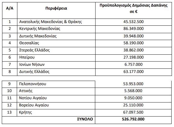 Το συνολικό ύψος της δημόσιας δαπάνης ανέρχεται σε 526.792.000 ευρώ