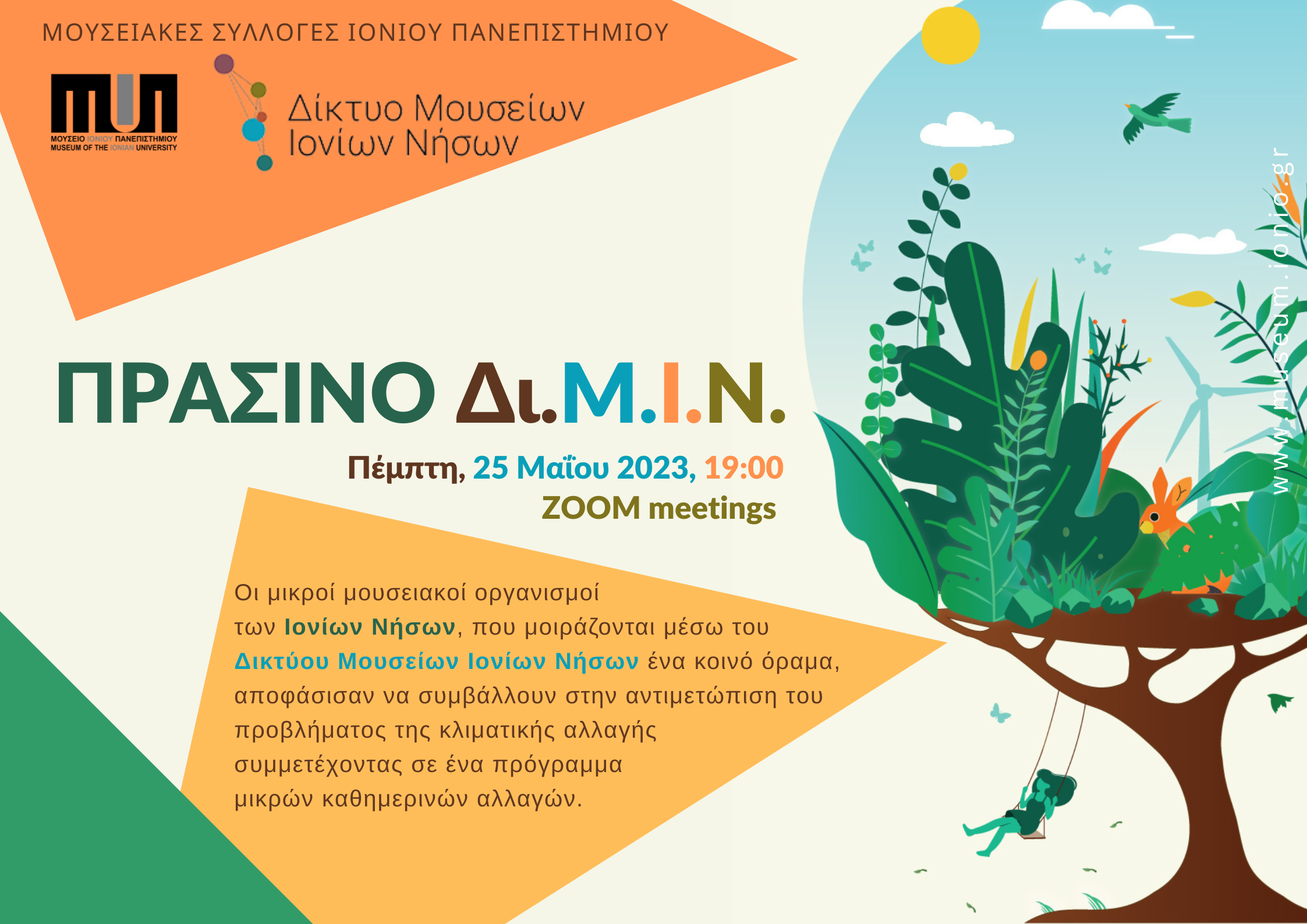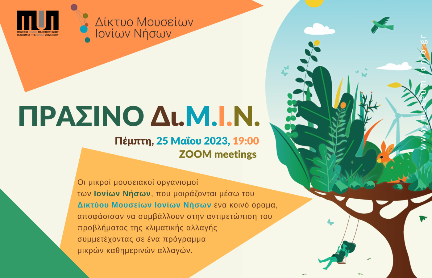 Οι μικροί μουσειακοί οργανισμοί των Ιονίων Νήσων, που μοιράζονται μέσω του Δικτύου Μουσείων Ιονίων Νήσων ένα κοινό όραμα, αποφάσισαν να συμβάλλουν στην αντιμετώπιση του προβλήματος της κλιματικής αλλαγής συμμετέχοντας σε ένα πρόγραμμα μικρών καθημερινών αλλαγών.