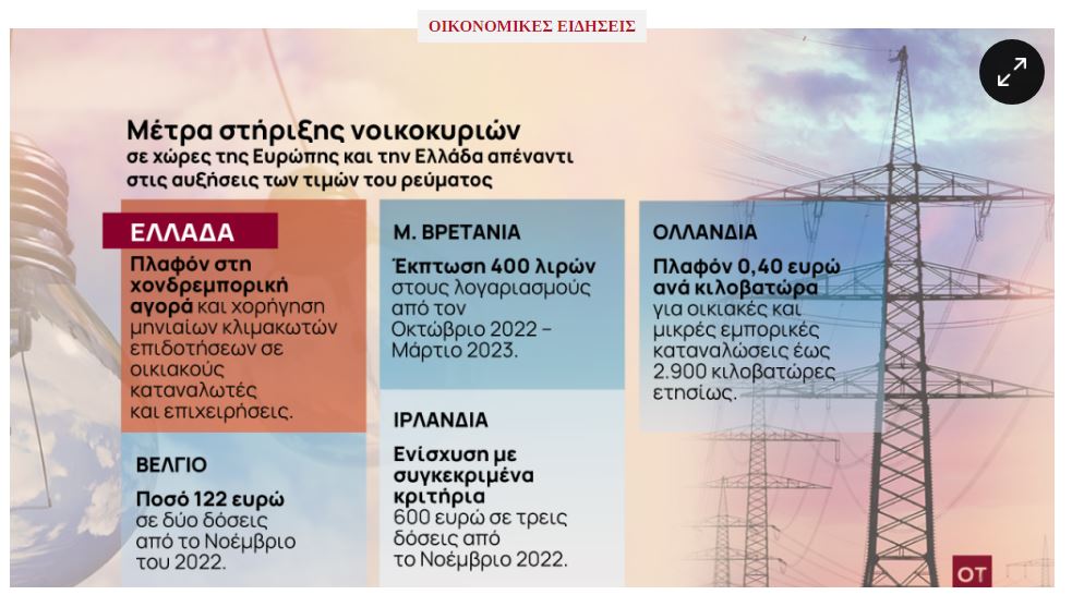Λογαριασμοί ρεύματος: Πιέσεις από ΕΕ και συστάσεις από ΟΟΣΑ για στοχευμένες επιδοτήσεις [Πίνακας]