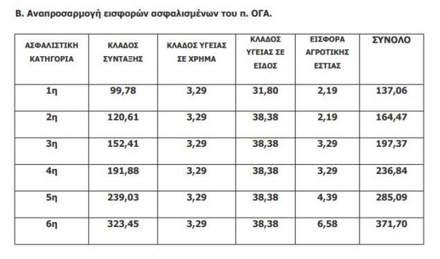 Παρακάτω ακολουθεί αναλυτικός πίνακας με την αναπροσαρμογή των εισφορών των ασφαλισμένων αγροτών του π. ΟΓΑ: