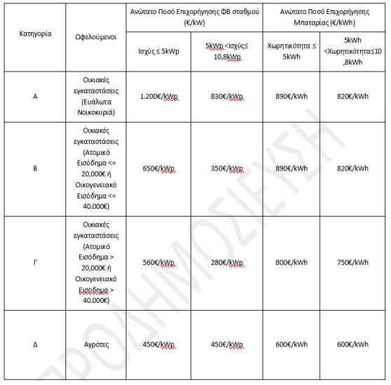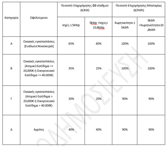 Δικαιούχοι του προγράμματος είναι νοικοκυριά και αγρότες που θα μπορούν να εγκαταστήσουν το δικό τους μικρό φωτοβολταϊκό, σε συνδυασμό με σύστημα αποθήκευσης (μπαταρία).