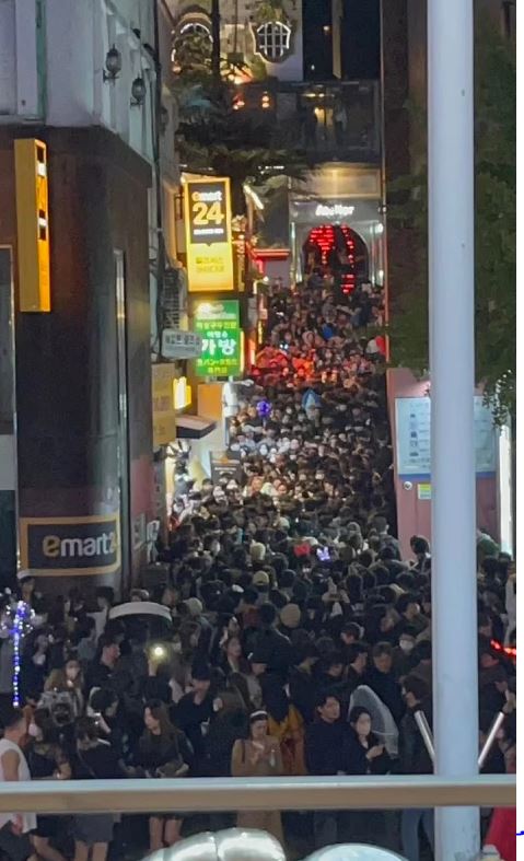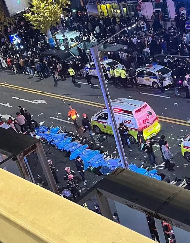 Τουλάχιστον 154 άνθρωποι (98 γυναίκες και 56 άνδρες) ποδοπατήθηκαν μέχρι θανάτου και άλλοι 133 τραυματίστηκαν (πολλοί σοβαρά) όταν ένα τεράστιο πλήθος συγκεντρώθηκε στους στενούς δρόμους συνοικίας της Σεούλ για να γιορτάσει το Χάλογουιν.