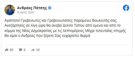 Από την πλευρά του, ο βουλευτής -απευθυνόμενος στους πολίτων των Γρεβενών- υποστηρίζει ότι θα παραμείνει ανεξάρτητος.