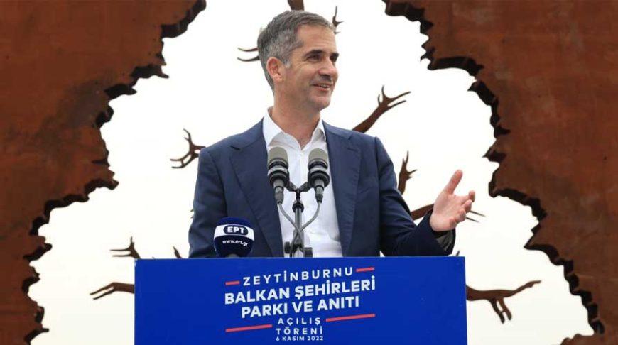 «Χαίρομαι που βρίσκομαι σήμερα στην Κωνσταντινούπολη. Σε αυτή την υπέροχη και μοναδική πόλη, της οποίας η πλούσια και ένδοξη ιστορία κάνει τις καρδιές πολλών σε όλο τον κόσμο, ιδιαιτέρως εμάς τους Ελλήνων, να χτυπάνε λίγο πιο γρήγορα. […] Εμείς οι δήμαρχοι αγωνιζόμαστε για πόλεις πιο ανοιχτές, πιο πράσινες, πιο φιλικές, πιο δίκαιες, πιο ανθρώπινες. […] Δεν είναι, όμως, αυτό άλλο ένα πάρκο, όπως δεν είναι αυτή άλλη μια τελετή εγκαινίων. Συγκεντρωθήκαμε σήμερα γύρω από το δέντρο της αδελφοσύνης, που είναι σύμβολο της φιλίας και της αλληλεγγύης των πόλεων των Βαλκανίων», τόνισε.