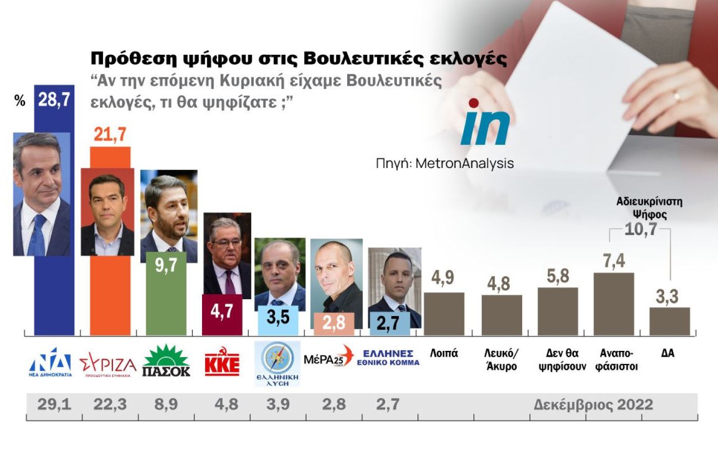 Η αδιευκρίνιστη ψήφος είναι στο 10,7%.