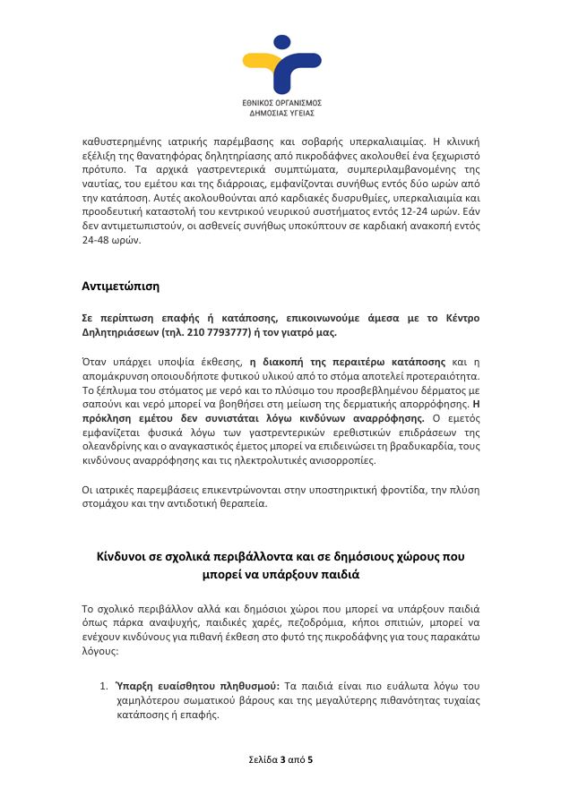 Η ενημέρωση αυτή καθιστά αναγκαία την ευαισθητοποίηση της σχολικής κοινότητας και της τοπικής κοινωνίας για έναν κίνδυνο που συχνά υποτιμάται, ακριβώς επειδή το συγκεκριμένο φυτό είναι ιδιαίτερα διαδεδομένο στην Ελλάδα.