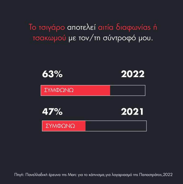 Η κα. Λένα Πλαΐτη, Γενική Διευθύντρια Επικοινωνίας της Παπαστράτος, σχολιάζοντας τα ευρήματα της έρευνας, σημείωσε: «Για 2η συνεχή χρονιά παρουσιάζουμε τα αποτελέσματα της πανελλαδικής έρευνας της Marc για το τσιγάρο, η οποία μας βοηθά να κατανοήσουμε όσα συμβαίνουν στην κοινωνία τόσο από τη μεριά των καπνιστών όσο και από εκείνη των μη καπνιστών για μία συνήθεια που παρότι θεωρείται ξεπερασμένη συνεχίζει να υιοθετείται από 1 στους 4 Έλληνες. Δέσμευση που ακολουθεί κάθε πράξη μας στην Παπαστράτος είναι να μειώσουμε τους καπνιστές στην Ελλάδα κατά 1,5 εκατομμύριο μέχρι το 2025. Με όχημα την επιστήμη εντείνουμε τις προσπάθειές μας ώστε να υπάρχουν εναλλακτικές, καινοτόμες λύσεις για όσους επιμένουν να καπνίζουν, θεωρώντας, πάντα τη διακοπή του καπνίσματος ως την καλύτερη επιλογή για έναν καπνιστή.»