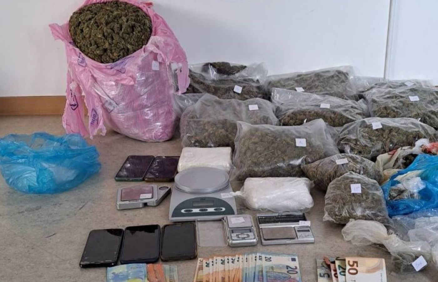 Σε έρευνες που πραγματοποιήθηκαν σε σπίτια των μελών της εγκληματικής οργάνωσης, βρέθηκαν, μεταξύ άλλων, περισσότερα από τρία κιλά κάνναβης, 520 γραμμάρια κοκαΐνης, επτά ζυγαριές ακριβείας, οκτώ ναρκωτικά δισκία, αντικείμενα σχετικά με τη συσκευασία ναρκωτικών, ένα περίστροφο, 69 φυσίγγια διαφόρων τύπων και διαμετρημάτων και το χρηματικό ποσό των 20.485 ευρώ.