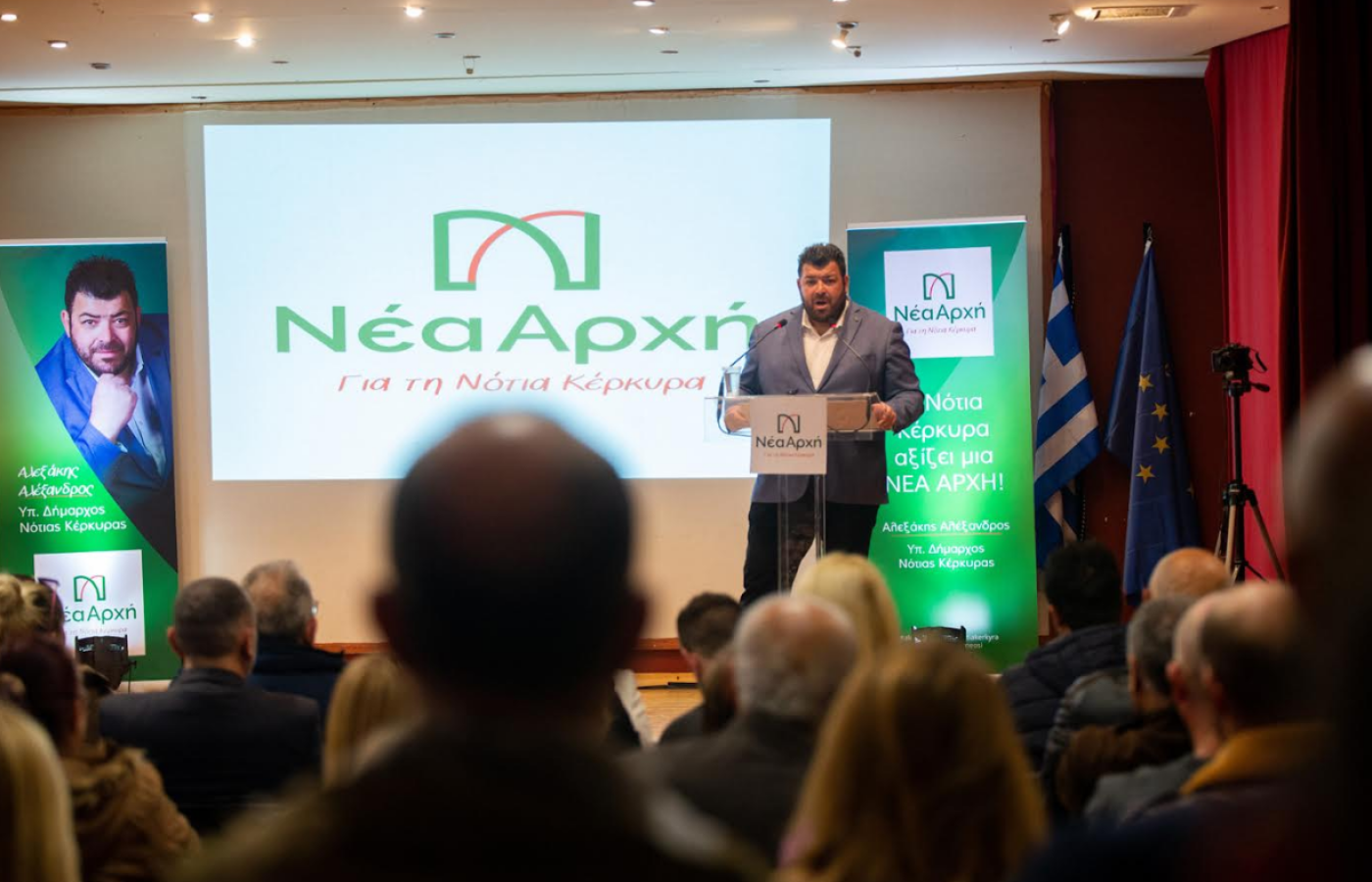 Παρουσία πλήθους δημοτών που κατέκλυσαν την αίθουσα εκδηλώσεων «Λόγου & Τέχνης» στην Λευκίμμη, ο επικεφαλής και υποψήφιος Δήμαρχος Νότιας Κέρκυρας, Αλέξανδρος Αλεξάκης παρουσίασε την Ιδρυτική Διακήρυξη, το λογότυπο και το όνομα του Συνδυασμού «ΝΕΑ ΑΡΧΗ για την Νότια Κέρκυρα».