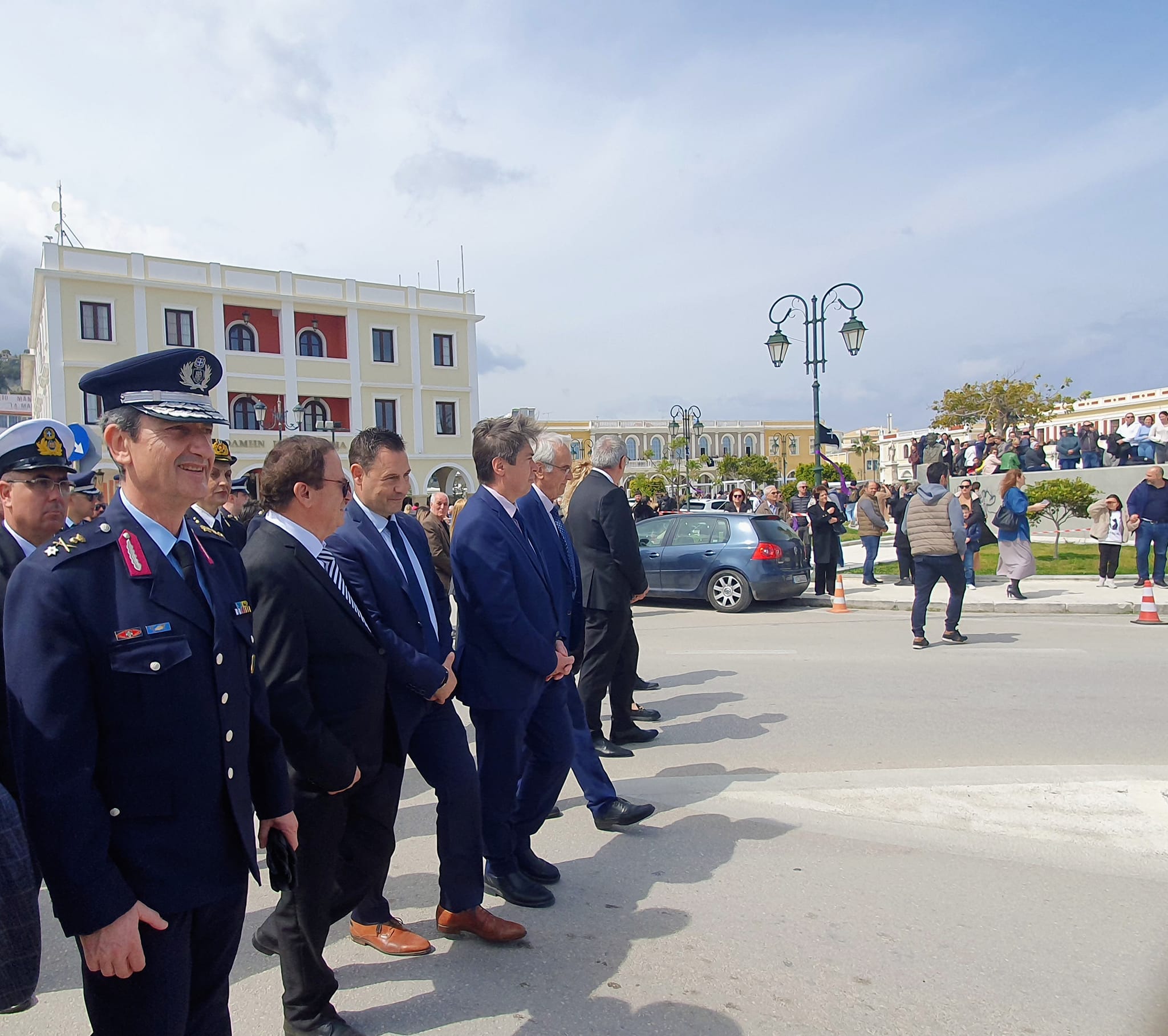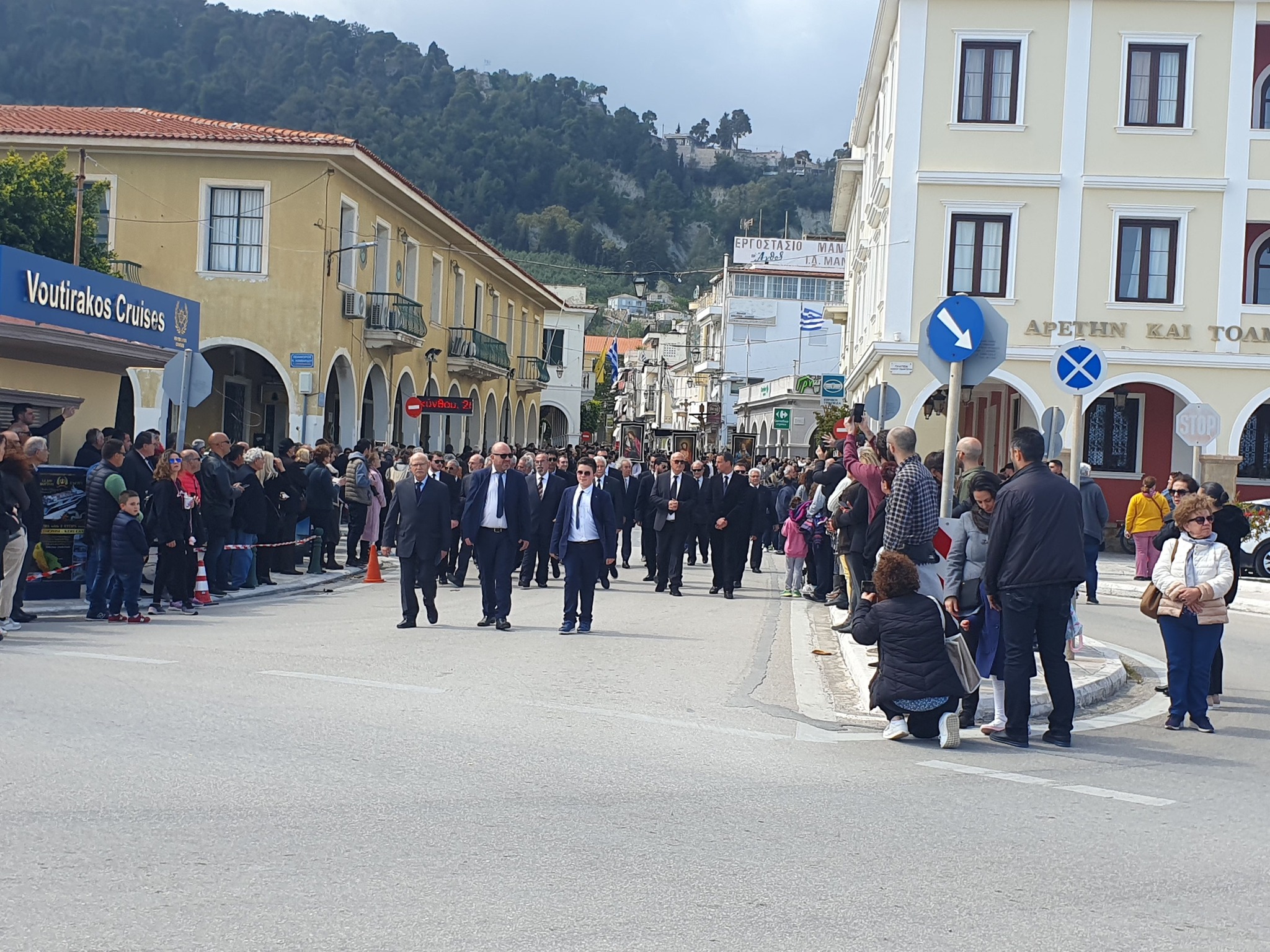 Το μεσημέρι, χιλιάδες πιστοί συρρέουν στην κεντρική πλατεία του νησιού και ακολουθούν τον Εσταυρωμένο και την περίφημη εικόνα Mater Dolorosa μέχρι την εκκλησία του Αγίου Νικολάου των ναυτικών, όπου ο μητροπολίτης ευλογεί τους πιστούς και μεταφέρει τον Εσταυρωμένο στο εσωτερικό της εκκλησίας, όπου και τον τοποθετεί πλέον στον Επιτάφιο. Το βράδυ σε όλες τις εκκλησίες του νησιού ακολουθεί ο επιτάφιος θρήνος.