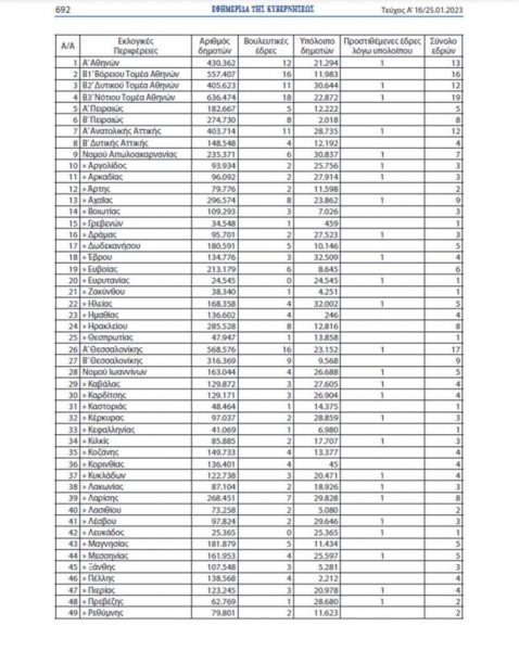 -Αναλυτικά ο αριθμός των εδρών ανά εκλογική περιφέρεια
