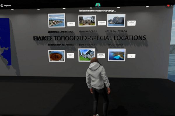 Ο χώρος «Ionian Islands Film Office Metaverse» είναι ένα εικονικό περιβάλλον που επιτρέπει στους κινηματογραφιστές και τους παραγωγούς να συνεργάζονται με το Ionian Islands Film Office και να προετοιμάζουν την παραγωγή ταινιών σε έναν πλήρως ψηφιακό χώρο.